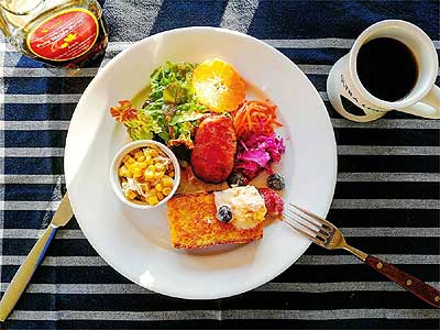 本日の朝ごはんプレート: カボチャと蓮根の素揚げ根菜サラダ、ひじきと伊予間の バルサミコ酢和え、ブラウンライスケーキにクリームチーズと 自家製マーマレードをトッピング。 コーヒーは、甘味・酸味・苦みのバランスの取れた COFFEEYAハウスブレンドをセレクト。 有機みかんやポンカンの皮をハチミツでじっくり煮込んだ マーマレードとチーズの組み合わせは抜群!! 体も温まって一石二鳥です(^^)/ 良い...