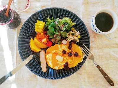 緑の多い公園での森林浴。 木々の葉が陽射しを遮ってくれるので暑さを イイ感じにやわらげてくれます。 松や杉などの針葉樹にはリラックス効果もあるので 朝散歩には最適ですね:-) 散歩の後は、朝ごはん。 今朝は、焼き立てのソーセージが入ったバゲットと 皮つきポテトとズッキーニのジェノベーゼ和え、 クミンを効かせたキャロットラペ、ブルーベリーを トッピングしたヨーグルト。 コーヒーは、ハンドドリップでじっくり淹れた 山口農...