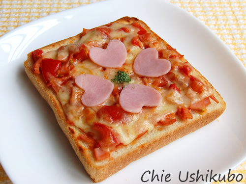 JUGEMテーマ:今日の朝ご飯 昨晩の「ジュレ★そうめん」の具材、型抜きハム&チーズ 型を抜いた後のハムとチーズを使ってピザ風トーストで、残さずいただくリメイクレシピ! ?ハムは細かく切って、ケチャップ大さじ1混ぜる。 (トマトが残っていたら、それも刻んで入れる) ?食パンにバターを塗って、ハム&ケチャップを広げる。 ?チーズをちぎってのせてオーブントースターで焼く。