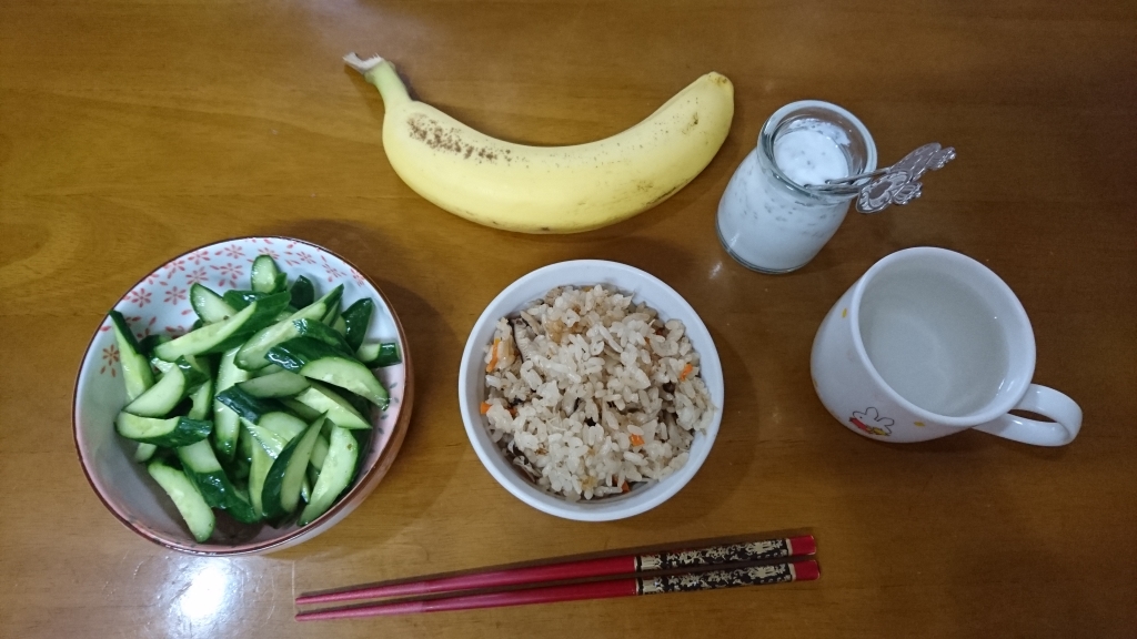 JUGEMテーマ:今日の朝ご飯 フネでございます。おはようございます! 久し振りの雨で、涼しい朝ですね。 のんびり朝ご飯をいただきました。 昨晩、炊き込みご飯を炊いておりました。 キュウリの浅漬けと一緒に食べたら、箸が止まらず、おかわりしてしまいました。 今日も忙しい1日になりそうです。 では、出かけてきま〜す♪ 50歳代ランキング