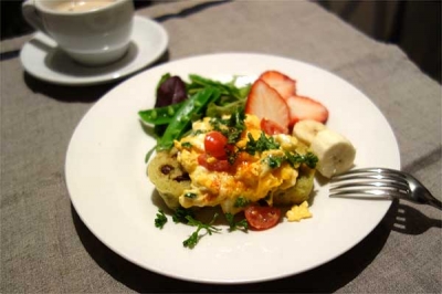 おはようございます。 今朝は、とろとろの野菜スクランブルエッグオープンサンドと スイートフレンチローストをカプチーノにしていただきます。 お好みの野菜やチーズを卵に混ぜてスクランブルエッグにするだけ。 あとは、パンにのっけるだけの簡単メニュー。 忙しい朝にオススメです(^^)/ JUGEMテーマ:今日の朝ご飯