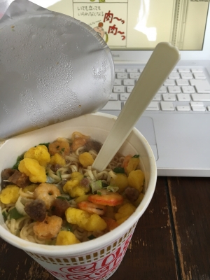 これが私の今朝の朝食。約2週間続いてる、蒸し野菜とコーヒー。最近、ちょっと憧れてるモデルがグルテンフリーにしてるって言ってたので、私も朝ご飯は「なんちゃってグルテンフリー」にしてるんだよね。要するに小麦や大麦のもの、パンとかシリアルとか、ホットケーキとかそういうものを食べないってだけ。物足りないけど、我慢、我慢。 少し体重落としたいから。パンが大好きなので、すごくつらいけど、意外に腹持ちいいので(というか、あまりお腹が空かない)なんとか継続できちゃってる。蒸し野菜はこの皿に手でちぎったり...