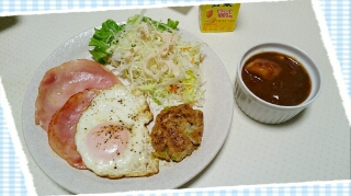 JUGEMテーマ:今日の朝ご飯 今日の朝ごはんです。 オシャレに盛ってみました☆ いつもはもっと雑とゆうか、お皿に白米を盛ってドーンと目玉焼き乗っけて ザッ!とサラダをお皿に乗っけて残り物のおかずもボンボンと乗せて お写真撮られたらズボラがバレる!ってな具合なんですけど。 たまーに、気分次第でこのようにオシャレ感を出したりします☆ 今日は、そんな気分だったわけで。 パンにしようか?白米にしようか?迷った結果、 パンを選んで食べてたのですが・・・最終的には白米も食べました。笑 炭水化物が大...