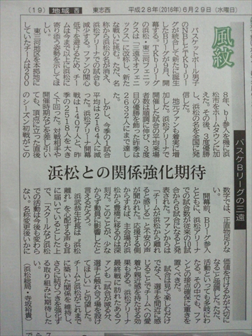 JUGEMテーマ:三遠ネオフェニックス おはようございます(^_^)/ 今朝の静岡新聞、19面に 掲載の「風紋」です。