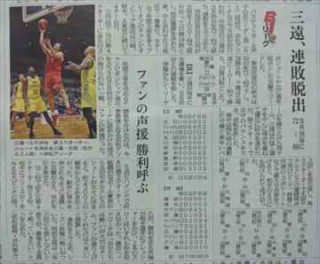 JUGEMテーマ:三遠ネオフェニックス おはようございます(*^o^*) 今季浜アリ最終戦、 みごと勝利してくれた三遠! 新聞を見るのも心が躍りますわ! 攻守に大活躍の太田選手の カラー写真、 『ファンの声援 勝利呼ぶ』の 文字が嬉しいですねぇ〜(*^_^*) ・ [スポナビ動画] 3/26 B1 三遠 vs. SR渋谷 ハイライト https://t.co/sTSvwsPdaB — バスケニュース (@bbnews_jp_bot) 2017年3月26日 ・ お天気もいい☀し、 ウキウキHappyですな ・ Web静新: 三遠、連敗脱出 バスケB1リー...