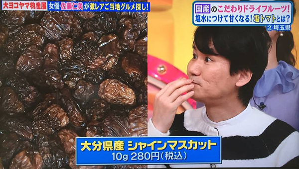 安心院ドリームファーマーズのシャインマスカット“干しぶどう”が、 「ヒルナンデス」に登場! http://yamashiroya.biz/?pid=70048397 ナンチャンが試食。平愛梨ちゃんが宣伝♡ 購入お取り寄せは通販担当ヒロタまで「ブログみました」とお気軽にお尋ね♪ ↓ ↓ にほんブログ村 JUGEMテーマ:ご当地グルメ