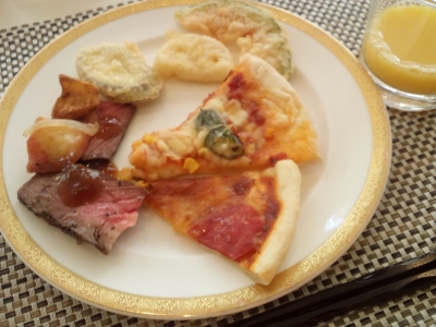 グルメマイルのキャンペーンで1000マイルいただくのらぁー! と、ゆーことでぇ〜 ANAクラウンホテルで らんちんだよーん! ピザと季節の野菜天ぷらとローストビーフ パン2種とチーズ2種とサラダ ラーメンと茶そばとキッシュとチキン グリルチキンと白身魚の煮込みとホエー豚の煮込みとローストビーフ ...