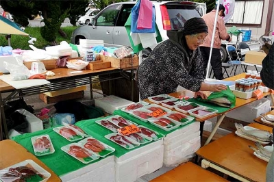 ここは、青森・八戸の台所と呼ばれる館鼻岸壁朝市 (たてはながんぺきあさいち)。 港沿いには、地元でとれた野菜や果物、新鮮な魚介類、 干物、お惣菜やパンなどの他、雑貨やミシンまでありと あらゆるものが並びます。 イサバのかっちゃ(お魚売りのお母さん) 新鮮な魚介類を食べ歩くのも朝市の楽しみのひとつです。 港にはイカ釣り漁船が・・・ 朝早くから多くの人で賑わう朝市。 ちょっと、早起きをして朝市で朝ごはんもイイですね(^...