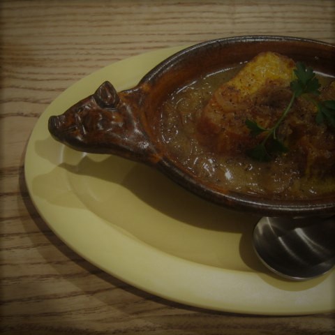 ポロコに出てたお店が職場の近くだったので、旅行の打ち合わせ兼ねて晩ごはん。 前菜にオニオングラタンスープ。器が豚さん。 ムール貝の酒蒸し。 お肉たっぷりのボロネーゼ。 〆にムール貝の酒蒸しのスープをリゾットに。 魚介の味がしみてウマウマ。 ガーリーなインテリア。 全部おいしいし、かわいいんだけど何かが物足りない。 整いすぎているのかなぁ。 それとデザートがなかったのが残念。 ランチにはガトーショコラやピ...