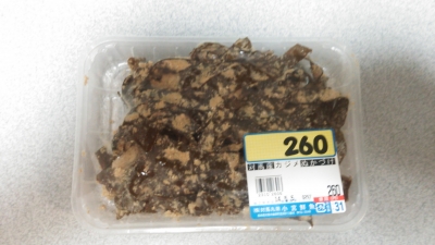 JUGEMテーマ:食材 昨日スーパーをぶらぶらしていると、こんな食材が売っていました。 ぬか漬けって、野菜を漬けるもんばかりだと思っていましたが、 たしかに海藻って植物だし、海に囲まれた対馬では海藻も漬けるのねぇと驚き購入。 そして、普通のぬか漬けと同じノリでぬかを落とし、今日の食卓へ・・・。 結論。味のしない海藻でしたf^_^;)。 そもそも、カジメはきざんで、醤油を垂らし混ぜてから食べるのが、一般的な食べ方のようです(苦笑)。 知らない食べ物は、ちゃんと食べ方を聞いてから手を付けな...