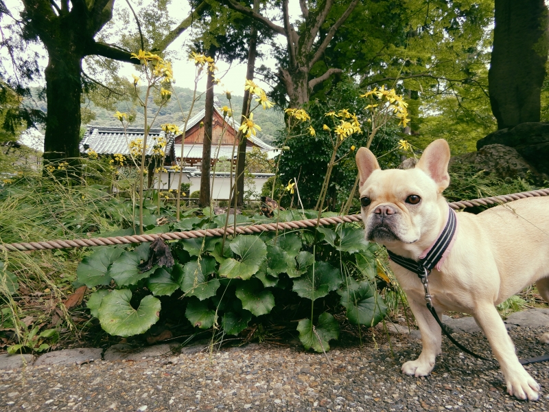 JUGEMテーマ:大好きなパン 南禅寺のお庭のツワブキが、見頃を迎えています。 南禅寺をお散歩した帰りに、ベーグルとパンの店「ブラウニーブレッド&ベーグルズ」に寄りました。 丸太町通り手前の東大路沿いにあります。 歩道が細く、照明が暗めなので見落としがちのお店です。が、有名店! ハンちゃんには、店先で待ってもらいベーグルと食パンを買って来ましたよ。 ベーグルは十数種類もあり、いつも、とても迷います。 今日はくるみとイチ...