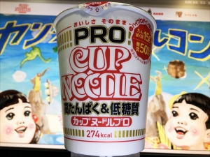 連日暑いですね、@おざさです。 ということで。 今日のお昼は・・・ 「日清カップヌードルPRO」です。 「プロ」とは、私にふさわしいな(爆w!) 高たんぱく・低糖質だそうです。 中身は普通とあまり変わらず、 直に「ハイプロテイン謎肉」・謎たまご・謎エビ・ネギ・粉スープが入っています。 麺は少し細い?いつものとは違うような感じです。 3分ジャストでいただきます。 今回はグレープシードオイルのみをかけていただきます。 塩分が少し薄く、私には丁度よい感じです。 ...