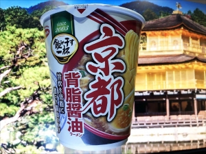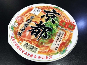 黄砂とPM2.5が非常に多いらしいので雨降ってくれないかな、@おざさです。 ということで。 今日のお昼は・・・ 「ニュータッチ京都背脂醤油味」です。 「凄麺」が美味しいのでドキドキですw。 液体スープ、後入れ九条種ネギ、かやく(チャーシュー・めんま)が入っています。 別売のラード・にんにく少々・削り粉を少し足し熱湯5分〜置き、 九条種ネギ・生ネギ・梅干しを飾っていただきます。 液体スープのピリ辛の背脂醤油が別入れラードと相まって美味い! (意外とピリ辛でした、苦...