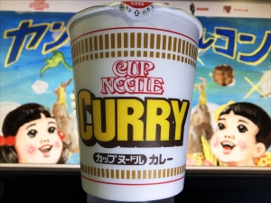 今日も黄砂とPM2.5が非常に多いらしい@おざさです。 ということで。 今日のお昼は・・・ 「日清カップヌードルカレー」です。 醤油味とともに誰もが一度は食べたであろう、カップ麺界の王様です。 カレー味なので「福神漬け」をトッピングしてみようと思います(笑)。 初めての試みです。さて、どうなることやら・・・ 直に粉スープ・謎肉・ネギ・謎ジャガ・人参が入っています。 当然中袋は無いカップ麺の基本中の基本「お湯を注ぐだけ」です。 一摘みほど別売の乾燥野菜...