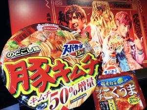 薄曇りで雨がパラつき少し寒い、@おざさです。 ということで。 今日のお昼は・・・ 「エースコック スーパーカップ1.5倍 豚キムチラーメン」です。 最近TVCMでEXITが宣伝してるヤツです。 キムチはめったに食べないのですが、 TVCMで笑福亭鶴瓶さん出演の「東海漬物こくうま」が あったので思い切ってトッピングしてみます。 もう見ただけで汗かいてきた(笑)。 粉スープ・ブタキムオイル・感想キムチ・豚・ネギが入っています。 「THEのどごし麺」と書いてあるので麺にも期待です。 ...