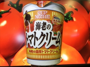 雨で冷たく寒い日曜日の、@おざさです。 ということで。 今日のお昼は・・・ 「日清カップヌードル 海老の濃厚トマトクリーム」です。 最近発売されたのかな?初めていただきます。 四角い乾燥謎トマト?・ブロッコリー・謎エビ・謎たまごが入っています。 熱湯2分半ぐらいでにんにく少し、グレープシードオイルを入れて よくかき混ぜいただきます。 謎トマトはちゃんと「トマト」してました。ブロッコリーも良い感じ! トマトクリームスープは文字通り「濃厚」で、 とろみがあり麺に凄く絡...