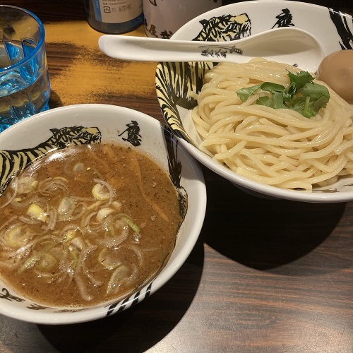 JUGEMテーマ:ラーメン 麺屋武蔵 鷹虎 高田馬場駅早稲田口正面の信号を渡って線路沿いの路地にあります。 味玉つけ麺 960円 今回は並盛にしましたが、中盛・大盛も同じお値段だそうです。 見ての通りうどんのような太ストレートの麺! かためでつるつるもちもち、すごくおいしいです! 麺だけでもかなり食べごたえがあるので、 並盛でないと食べきれなかったかもしれません。 スープは魚介豚骨とのことですが、醤油感と甘みを強く感じました。 ...