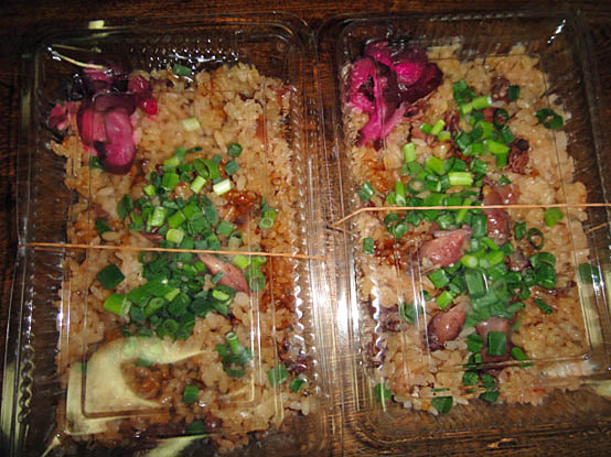 JUGEMテーマ:たっ・・・食べたいっ!! 夕方、JR中央線三鷹駅近くの、PISTE(クシヤキピステ)の前でテイクアウト用の総菜が販売されていたので、「ほたるいかめし」を購入。
