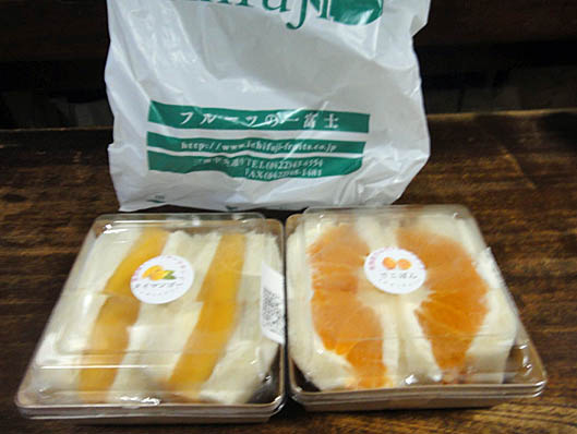 JUGEMテーマ:たっ・・・食べたいっ!! 午後、JR中央線三鷹駅近くにあるフルーツ一富士に寄りフルーツサンド数種を購入。 今日は「タイマンゴー」、「デコポン」をチョイス。