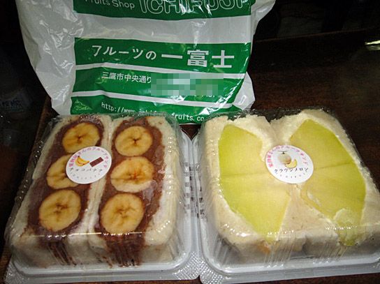 JUGEMテーマ:たっ・・・食べたいっ!! 午後、JR中央線三鷹駅近くにあるフルーツ一富士に寄りフルーツサンド数種を購入。 今日は、台湾バナナの「チョコバナナ」、「クラウンメロン」をチョイス。 久しぶりの、一富士さんのフルーツサンドです。 うまっ!