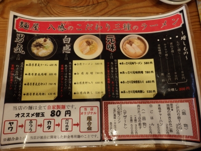 JUGEMテーマ:福岡のラーメン 福岡県大川市の「たのしいはんこ屋さん」正信堂(せいしんどう)です。 福岡県大川市・大木町・柳川市・久留米市城島町・三潴町・ 佐賀県佐賀市諸富町・川副町及び近隣の 実印・銀行印・会社印・ゴム印の事ならお任せください。 ★☆★☆★☆★☆★☆★☆★☆★☆★☆★☆★☆★☆★☆★☆★☆★☆★☆★ はんの正信堂 徳永です。 慣れない「力仕事」で、ボロボロになった身体を慰めたくて(?)・・・ 筑後市の「麺屋 八感」さんへ・・・。二回目の訪問です! JAZZが流れる清潔感のある広くて明るいお店です...