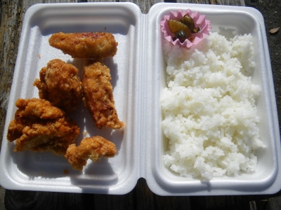 JUGEMテーマ:テイクアウト からめし弁当350円。 唐揚げは紙袋に入っていたので、ライスのふたのところに出して撮りました。 こちらは鶏の唐揚げメインの店。メニューはこんな感じです。 唐揚げとライスのみのシンプルなセットで頼んでみました。 唐揚げ丼になると、これに味付け煮卵や、唐揚げにタレがかかっているようです。 シンプルながら、さすが唐揚げ店、衣はややクリスピーで一味でしょうか、赤い粉末がちょっとかかっています。 肉質もしまっていて味がいいものでした。これで350円だからけっこうお得感があります...