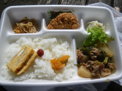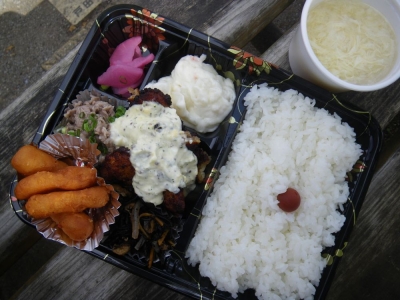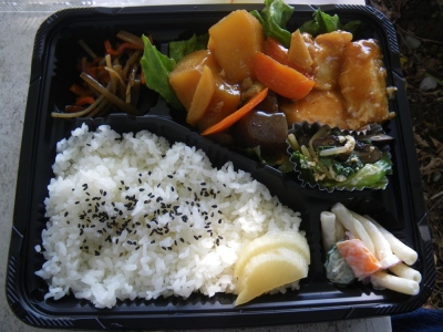JUGEMテーマ:テイクアウト 日替わり弁当450円。 秩父駅ちかくにある弁当屋さんです。 日替わり弁当はこの日は「豚肉とカブの煮物」というのでそれで。 上のまんなかにあるのはコロッケ1/2です。 駅ちかくのお店ということもあり、何も情報がないので期待していなかったのですが、メインも副菜もなかなか味付けがよかった。 ほかのメニューも食べてみたいです。 日曜休み。 秩父市宮側町20-18。 店舗外観↑の奥の方にドラッグストアのセキが見えていますが、この裏に公園があります。 そこでいただくことにしまし...