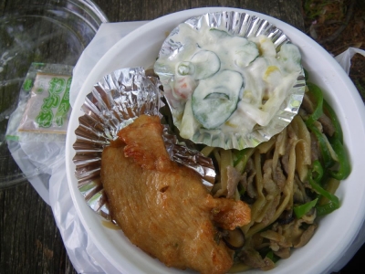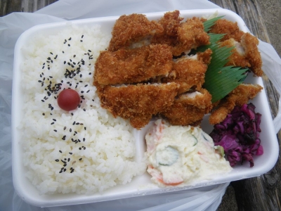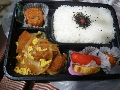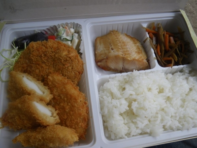 JUGEMテーマ:テイクアウト ミックスフライ弁当580円。 こじんまりとやっているお店です。 表に貼り出してあるメニューはこんな感じ。 お店の人に注文すると「1時半に来て」と言われる。時刻を見ると1時17分。 こういうときにブックオフでもあれば、と思ったらありました。道路ななめ向い。 で1時半にまた店にもどると同じように弁当待ちの人がほかに2名。 受け取って近くの公園で食べました。 小皿でおしんこがついてます。 エビと肉の薄切りをまとめたもの。その下に小さいイカフライ。 まーこんなもんですか。ご飯は...