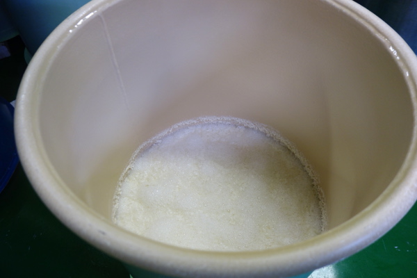 JUGEMテーマ:地酒造り 仕込水に麹・酵母・蒸米を加えます。 温度管理のもと、もろみの発酵を促す酵母を増殖させます。