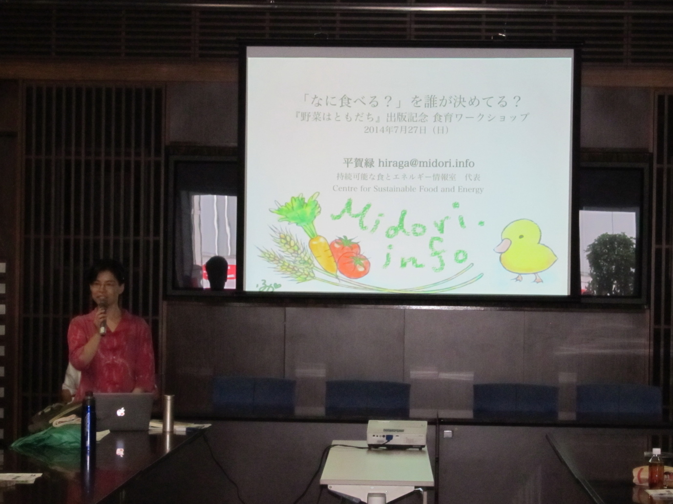 7月27日に、キャンパスプラザで親子で楽しむワークショップがありました。 だいたい90名くらいの方が参加していたように思います。 大人は平賀緑さんの講演会を熱心に聞いていました。 世界の食品業界の現状や問題点をわかりやすく教えていただきました。 自分の食べ物は自分で決める「食の自立」を考えてみてはどうか…と提案されていました。 専従Oさんは、センターの説明をされていました。 パック野菜お助け隊の方々が、実演されていました。 火の使えない会場でしたが、 旬のお野菜をささっと調理...