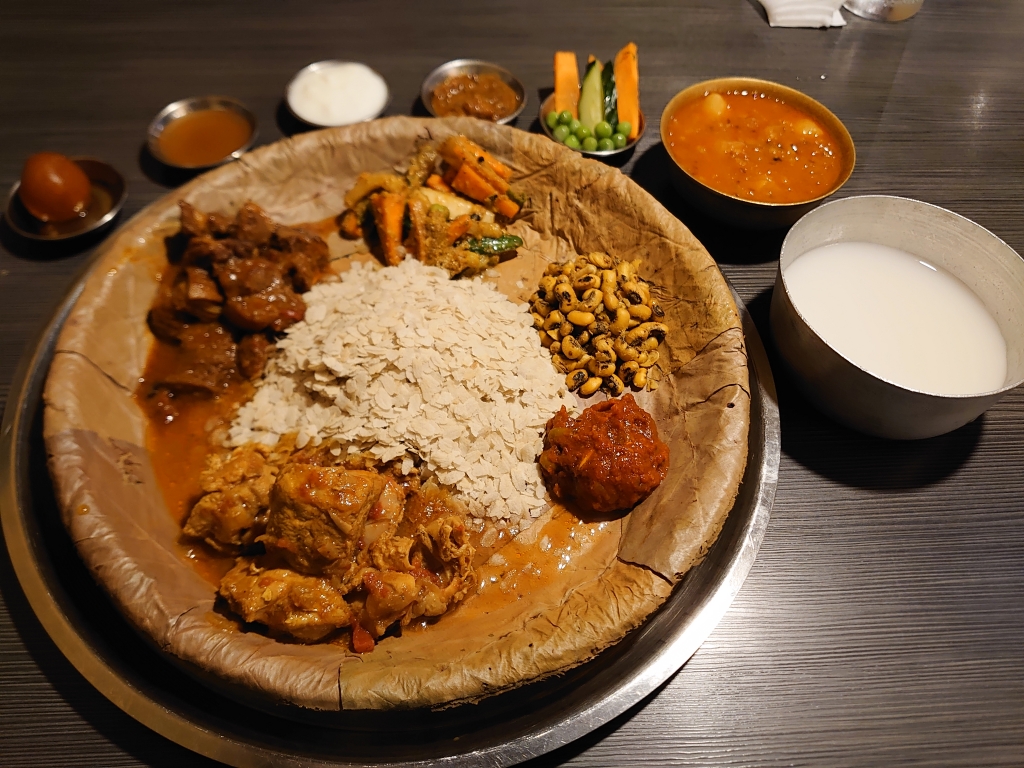 JUGEMテーマ:食! 先日の記事でカルチャーショックを受けたと書きました。 何に衝撃を受けたかというとネパール料理です ↑画像は【アーガン】という店で食べた、『ネワリボジ』です。 おそらくネパールのカレーのような食べ物なのだろうか!? 皿中央のお米に見えるものは チウラという干し飯でフレーク状で歯ごたえが結構あります。特別に味がするものではないです まわりはカレーや漬物の様なものです。 これらを食べつつチウラを食べると...