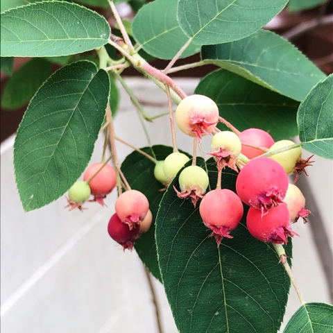 随分前に撮っていた写真を忘れていました。 先月上旬に実の兆しが出てきたジューンベリーですが、その後しっかり実が付きました。