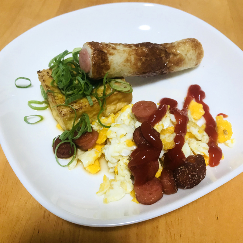 冷蔵庫にあった困った奴、早く消費させないと腐っちまう・・・。 そんなときは余り物創作料理という割と好きな、でも滅多にしないものを。 じゃじゃーん・・・・なんだそれは、という顔をしないでくれ。 ちくわって余ると困るものなんです、でもそれだけじゃなぁと。 そしたら魚肉ソーセージがあったので、ちくわの中に入れたらフィットしたんです。 あと焼き豆腐に魚肉ソーセージ切っただけのやつに玉子焼き(?)ねぎのせて、つゆかけーのケチャップもちょい足せば・・・。 立派な料理である。 そうね、コラボカフェのメニューにし...
