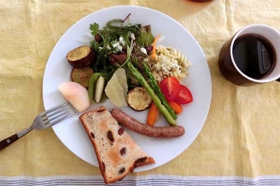 おはようございます。 今朝は、あの鬼のような暑さから少し開放され ムシムシさはあるものの久し振りの涼しさです。 この先、このぐらいの感じでお願いしたいものです・・・ さてさて、今朝は沖縄から送って頂いた海ぶどう入りの グリーンサラダと 桃、キウイ、グレープフルーツ、 バジルソーセージ、レーズンブレッド + ハニーダーク。 苦みの中にもハチミツのようなトロっとした甘さが感じられる 美味しい一杯です。 グリーンキャビアとも呼ばれ...