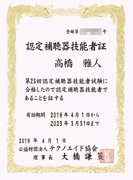 こんにちは。高橋雅人です! 先日、ついに、認定補聴器技能者の認定証が到着しました! という事で、この資格について改めて書いてみたいと思います。 そもそも認定補聴器技能者って? 補聴器の販売や調整などに携わる人に対し、財団法人テクノエイド協会が、厳しい条件のもと、基準以上の知識や技能を持つことを認定して付与する資格です。 テクノエイド協会HPより抜粋 日本の補聴器に関する資格の中では最も有名な資格だと思います! ...
