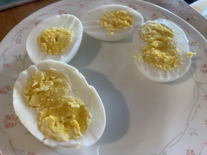 JUGEMテーマ:オーガニック農産物 使い捨て時代を考える会の農場である「この指とまれ農場」には、3種類の鶏さんがいます。 自給卵は「もみじ」、肉鶏という名前で注文を取っている鶏は「名古屋コーチン」、「岡崎おうはん」。 岡崎おうはんの卵をゆで卵にしたら、「黄身が2個ある!」と嫁の声。 非常に珍しいので、子供たちに喰われる前に記録に残しました。 排卵の周期が安定しないことにより、時々1個の玉子の中に黄身が2個入ってしまうのだそうです。 ...