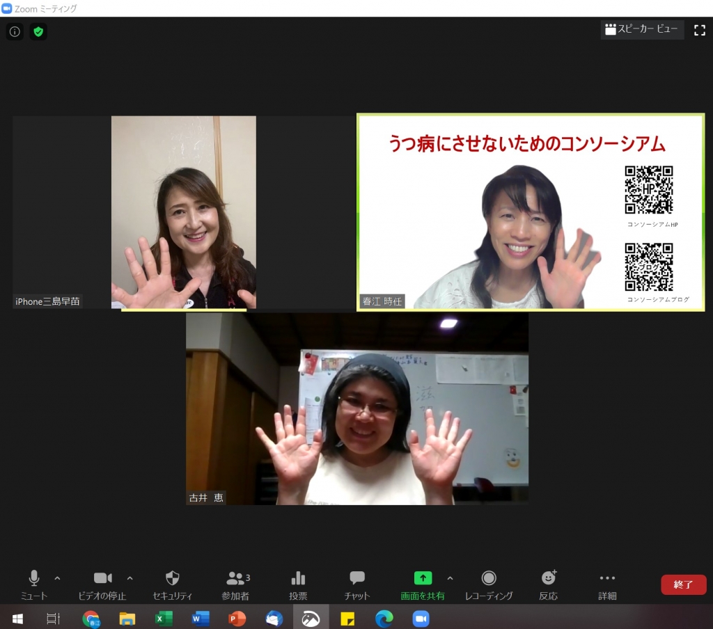 7月3日金曜日うつ病にさせないためのアドバイザー談話室開催しました。 アドバイザー談話室というのは、アドバイザーさん達の気軽に交流できるオンラインの場です。 愛知県の方、大阪の方、合計4名ご参加くださいました。 写真は公開の許可を頂いております。 途中、退室された方もおられましたので、お二人の写真になります。 1月の京都会場にご参加くださった方、今年度のオンライン講座にご参加くださった方、どちらの講座も同じ内容ですので、カラーカードやストレ...