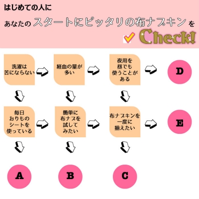 布ナプキン選びのチャート、6年ほど前に作って設置していたのですが普及に伴い、外していました。 久しぶりに作り直しました。 最近、新たに布ナプキンをスタートしたいという方が増えていて、何から使えばいいのかわからないというお声をよくいただきます。 自分がどのタイプが知り、スタートしやすいものから試してみましょう! 結果は、こちら☆ JUGEMテーマ:布ナプキン