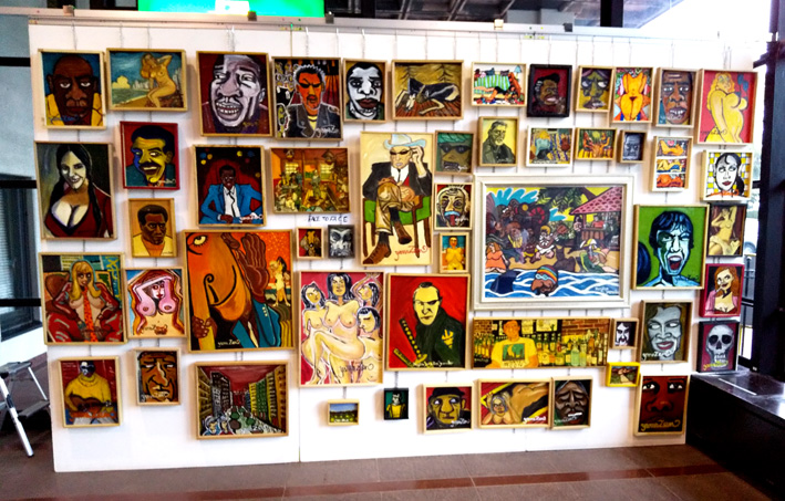 JUGEMテーマ:自然と共に生きる 山善油彩画個展「19回目の神経衰弱」 博多では知らぬ人はいない。 山部善次郎、略して山善。 18の頃からお世話になっている。 早い話がボクの音楽の師匠の一人だ。 頑張った甲斐あって20歳の時、山部さんの後ろでギターを弾いたこともあったな。 今日が個展の最終日と聞いて慌てて観に行ったんだが・・・ 作品が額から飛び出してきそうな感じというか 沢山のパワーを頂いた。 ↑ 恒例となっているセッションを終えて山部さんと