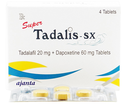 スーパータダリスSXはインドのアジャンタファーマ社製の合剤でタダラフィル20mgにダポキセチン60mgが配合されたED+PE患者向けの製品です。 加齢によるEDや前立腺肥大などの病と早漏症の相関関係は強く、同症状を併発している場合、それぞれの薬を服用するのは身体への負担、金銭面での負担も大きいため合剤の服用は効率的で、若い方から高齢者の方まで、年齢に関係なく効果があるとされています。 シルデナフィル成分とダポキセチン成分の合剤は何種類も市場に流通していますが、タダラフ...