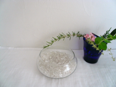 JUGEMテーマ:アロマクラフト ミセス・ヒロコの「アロマクラフトレシピ村通信」 〜 浄化も出来ちゃうサザレ石のジュエリートレー 〜 アロマセラピーサロンやエステティックサロンでは、施術の際にお客様が身につけているアクセサリーやジュエリーを外していただきます。 すると、必要になるのがジュエリートレーです。 ジュエリーケースは陶器やガラスの可愛らしいものも売られていますが、私はサザレ石をしいたシンプルなガラスの器をご用意しています。 用意するもの : クリアクォーツのさざれ石 200g...