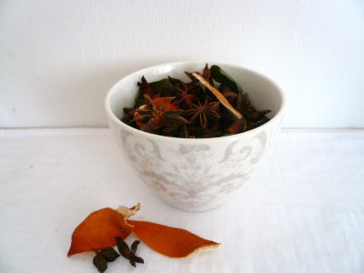 JUGEMテーマ:ハーブレシピ JUGEMテーマ:アロマクラフト ミセス・ヒロコの「アロマクラフト・ハーブレシピ村通信」 〜 スターアニスとオレンジ皮 スパイシーポプリの作り方 〜 かわいい器を見つけると、すぐにこれにポプリ入れたらカワイイだろうな〜と思ってしまいます。 ガラスのジャー、陶器のお皿、木のボウル‥これは、ローラ=アシュレイのショップで見つけた たぶんカフェオレボール。(小さめの丼かも‥??) で、可愛い器があると、どんなポプリを作ろうかな〜とわくわくします。 この器ならば大...