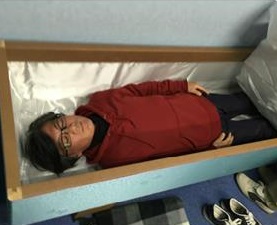 JUGEMテーマ:「終活」を考える 遺品整理・遺言など 1月27日(火)、立川で 「これから楽交@多摩」さん主催の 入棺体験会に参加してきました。 http://www.korekara-gakko.net/ 3分間、フタを閉めた状態で過ごします。 あっという間のでしたね。 暗闇の中でいろんな想いと映像が流れていきました。 このお棺は、ダンボールでできています。 お棺は、1度きり。そして、焼かれます。 そのために多くの木材を使い、 森林が消えていっているわけです。 日本で使われる1年間のお棺の量を考えれば...
