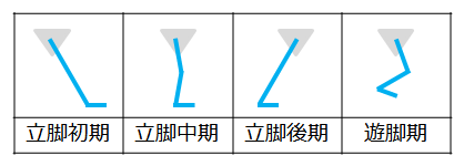 JUGEMテーマ:インソール(足底板) 足の動かす順序がヒトに与えたメリットって何でしょうか? 結論から言うと、足の出す順序は、二足歩行を可能にした大きな要因 なんです。 その理由を、説明しましょう。 まず、1本の足を動かすサイクルを、下図のように分解します。 遊脚期とは、地面から足が浮いている間のこと。 歩いているとき、1本の足は、立脚初期から遊脚期までのサイクルを繰り返すと考えます。 さらに、四足歩行では、1本の足を上げている間、他の3本で常に地面を支えているとします...