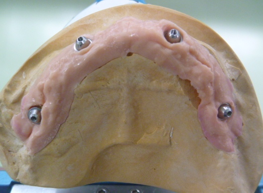 多くの歯を失った患者さまに、4本のインプラントだけで審美と機能を回復させる ALL ON 4(オールオンフォー)というインプラントの術式があります。 今回、PIB※1アクリリックフィニッシュ※2タイプの症例を 製作しました。 最近ではインプラントの症例で、様々な補綴物の選択ができます。 今後も臨床例がありましたらご紹介します。 ※1 PIB:プロセラ・インプラント・ブリッジ の略。詳しくはこちら ※2 人工歯を排列してアクリルレジンで重合すること JUGEMテーマ:歯科技工