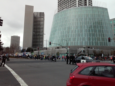 オークランドではデモ行進やっておりました。何かな?オイル会社の関連?環境保護?ちょっとわかりません。で、湖のちかくに地中海料理のバイキング料理店があります。おさるのお気に入り。って、最近知ったのですが。おさるの笑うツアーには絶対入れなければ。安くておいしい〜!!ほとんど野菜、果物で、少しの魚料理と鶏肉料理があったりします。こちら、フレンチトーストに、ブレッドプディング、メロンに、ライスプディングに、ニンジンデザート、グレープフルーツ・・のデザートプレート。ははは。で、BARTの駅まで湖のまわ...