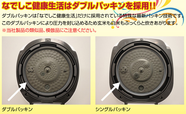 JUGEMテーマ:健康食品・サプリメント お米を美味しく炊くために 加圧と減圧の重要性 を前回記事にしましたが、 この圧力を外に漏らさないために採用されたのがこのダブルパッキン。 なんと特殊な最新パッキン技術で、なでしこ健康生活炊飯器だけの特別パッキン技術なんだとか。 圧力を封じ込めることも、お米を美味しく炊きあげる重要な要素なんですね。 おすすめブログ「なでしこ健康生活」の価格を徹底比較