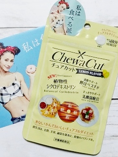 JUGEMテーマ:健康食品・サプリメント チュアカット レモンフレーバー 【商品説明】 悪玉脂肪とされる動物性脂を優先的にキャッチするシクロデキストリンで脂肪の吸収を抑制し、 高密度濃縮した乳酸菌がすっきりをサポート、更に酵母ペプチドが満腹をサポートします。 水なしで好きな時間にお菓子感覚で摂取できるダイエットサプリです。 直径1.5cmくらいの丸いタブレットです。1日の摂取目安量は3つ。 特に摂る時間は決まって...