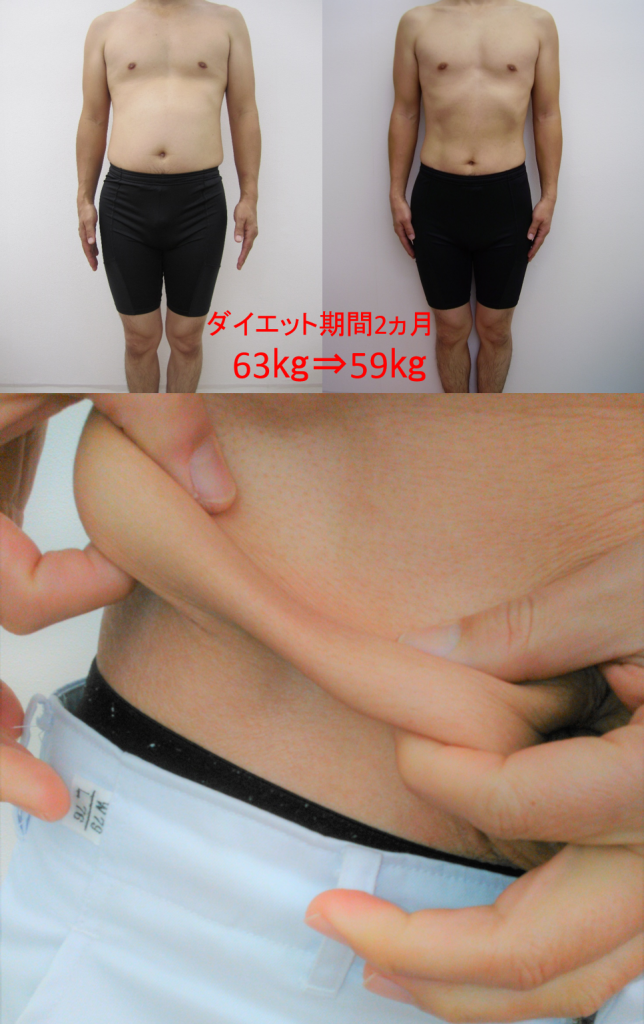 JUGEMテーマ:ダイエット JUGEMテーマ:健康 JUGEMテーマ:接骨院・整骨院 ダイエット開始からもうすぐで半年が経過します。 2ヵ月間で4?減り、ダイエットは成功しメタボが改善されました!しかし!数センチの脂肪というかたるみが、半年が経とうとしてますが残ったままです⤵ 3〜4?の減量は接骨院ダイエット(食事制限・トレーニングなし)の目標であり、限界かと思われます…