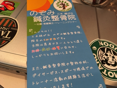 JUGEMテーマ:接骨院・整骨院 1ヵ月くらい前に急に右の肩に違和感があって 肩が上には上がるのですが、後ろに行きにくいのです。 そうとう酷くなってきたので、4月に開院していた 整骨院に初めて行って来ました!! のぞみ鍼灸整骨院 お店から歩いて2分くらいなんですよ。 急に言ってもすごくしっかりとカウンセリングを してくれて、いい感じの人でしたよ。 中が見えにく...